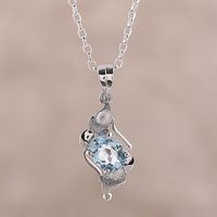 Rhodium Plated Blue Topaz Pendant Necklace from India 'Elegant Pool' Item ID: 2671792370