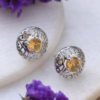 Rhodium-Plated Button Earrings with Citrine Stones 'Success Swirls' Item ID: 2671786572