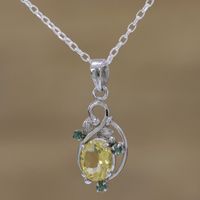 Rhodium Plated Citrine and Emerald Leaf Necklace from India 'Sunshine Bloom' Item ID: 2671791150
