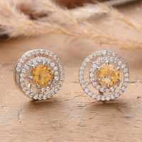 Rhodium-Plated Citrine Cubic Zirconia Button Earrings 'Sunlit Sparkle' Item ID: 2671781353