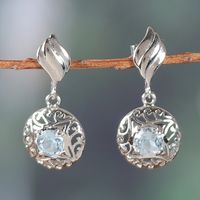 Rhodium-Plated Dangle Earrings with 1-Carat Blue Topaz Gems 'Celestial Swirl' Item ID: 2671782372