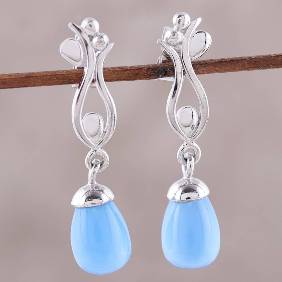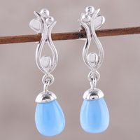 Rhodium Plated Dangle Earrings with Blue Chalcedony 'Blue Tulip' Item ID: 2671618729