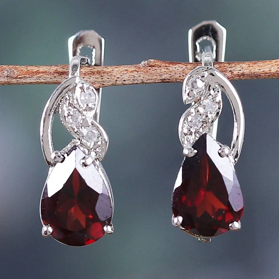 Rhodium-Plated Drop Earrings with Garnet and Cubic Zirconia 'Red Glam' Item ID: 2671787382