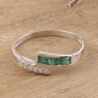 Rhodium-Plated Emerald Band Ring from India 'Sun Path in Green' Item ID: 2669925496