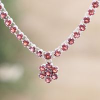 Rhodium-Plated Floral Pendant Necklace with Garnet Stones 'Passionate Soul' Item ID: 2671786722
