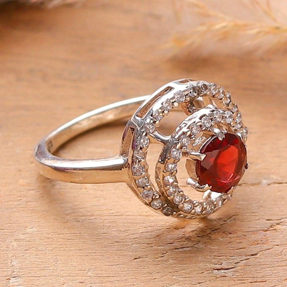 Rhodium-Plated Garnet Cocktail Ring with Cubic Zirconia 'Spirited Sparkle' Item ID: 2671781322