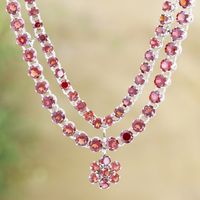 Rhodium-Plated Garnet Pendant Necklace from India 'Lavish Crimson' Item ID: 2671622204