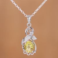 Rhodium Plated Leafy Citrine Pendant Necklace from India 'Sunshine Vine' Item ID: 2669942104