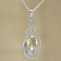 Rhodium Plated Lemon Quartz Pendant Necklace from India 'Lavish Vines' Item ID: 2671791058
