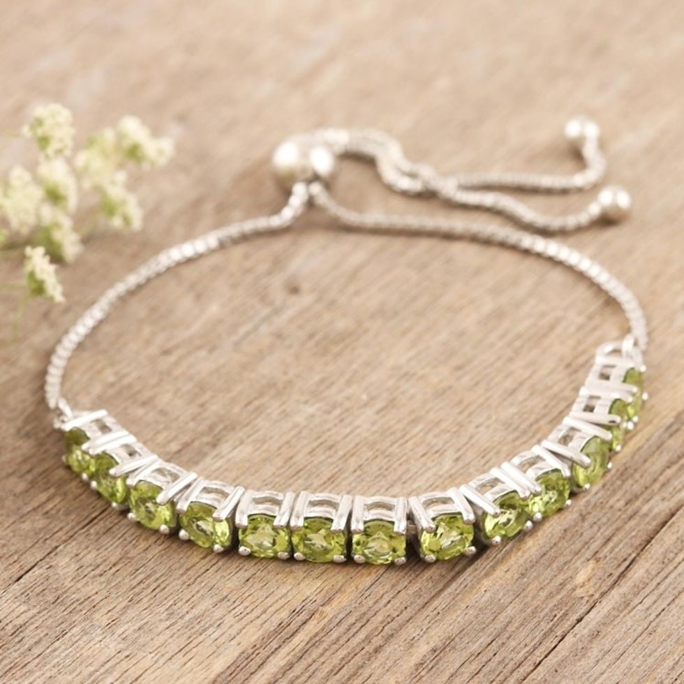 Rhodium-Plated Peridot Pendant Bracelet 'Sunbathe in Green' Item ID: 2671788714