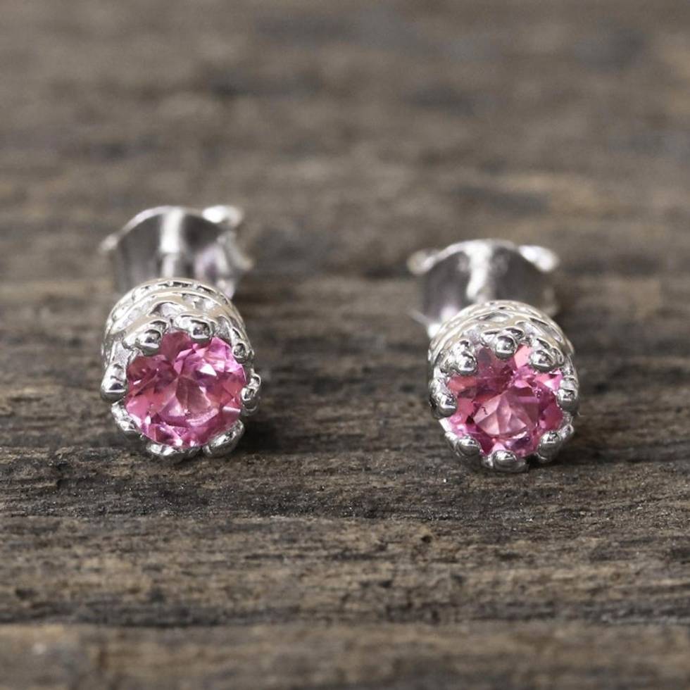 Rhodium Plated Pink Tourmaline Stud Earrings from Thailand 'Brilliant Splendor' Item ID: 2669926151