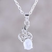 Rhodium Plated Rainbow Moonstone Pendant Necklace 'Wispy Bloom' Item ID: 2671792637