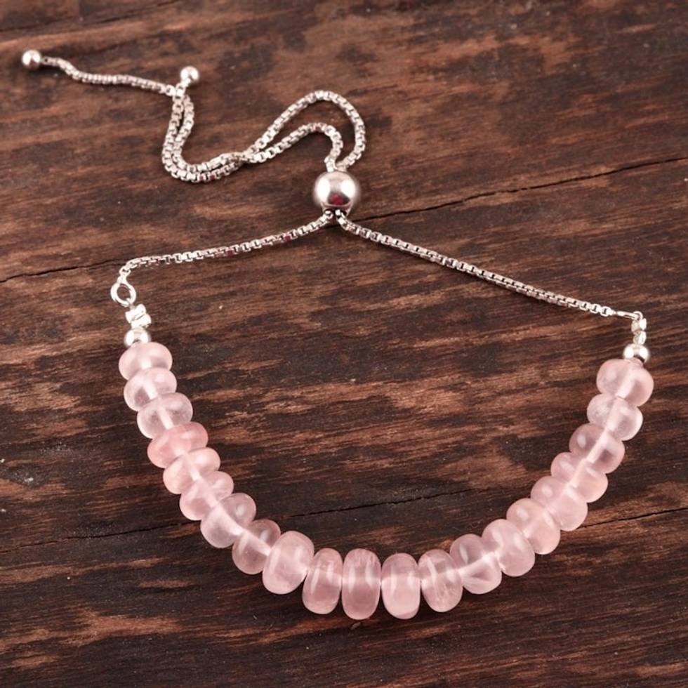 Rhodium Plated Rose Quartz Beaded Bracelet from India 'Passionate Charm' Item ID: 2671789519