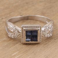 Rhodium-Plated Sapphire and Cubic Zirconia Cocktail Ring 'Royal Plaza' Item ID: 2671788361