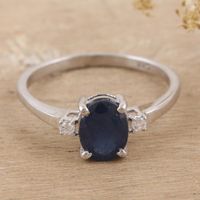 Rhodium-Plated Sapphire and Cubic Zirconia Ring 'Depth of Dreams' Item ID: 2671788339