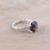 Rhodium Plated Smoky Quartz Solitaire Ring from India 'Elegant Dazzle' Item ID: 2671792002