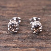 Rhodium Plated Smoky Quartz Stud Earrings from Thailand 'Brilliant Splendor' Item ID: 2671641524