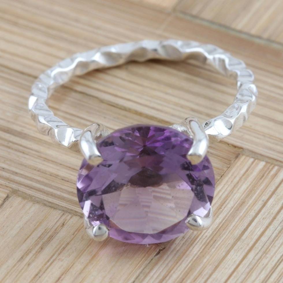 Rhodium-Plated Sterling Silver Amethyst Cocktail Ring 'Ultraviolet' Item ID: 2671787676