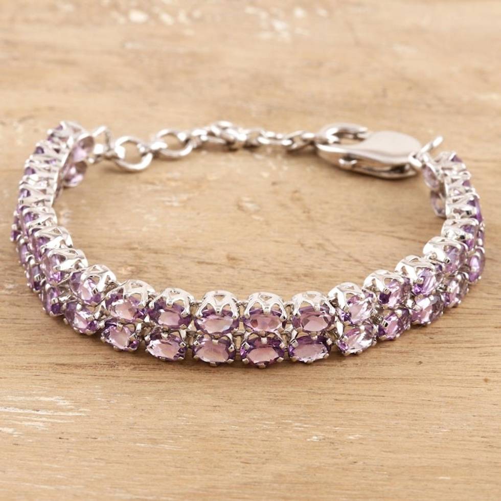 Rhodium-Plated Sterling Silver Amethyst Tennis Bracelet 'Purple Deluxe' Item ID: 2669923796
