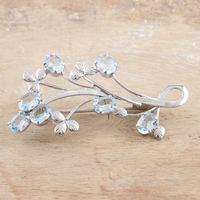 Rhodium-Plated Sterling Silver Blue Topaz Brooch 'Ice Dream' Item ID: 2671788111