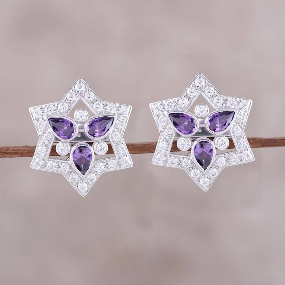 Rhodium Plated Sterling Silver Button Earrings from India 'Glistening Star' Item ID: 2671792864