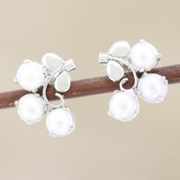 Rhodium-Plated Sterling Silver Cultured Pearl Drop Earrings 'Sea Trio' Item ID: 2669943797