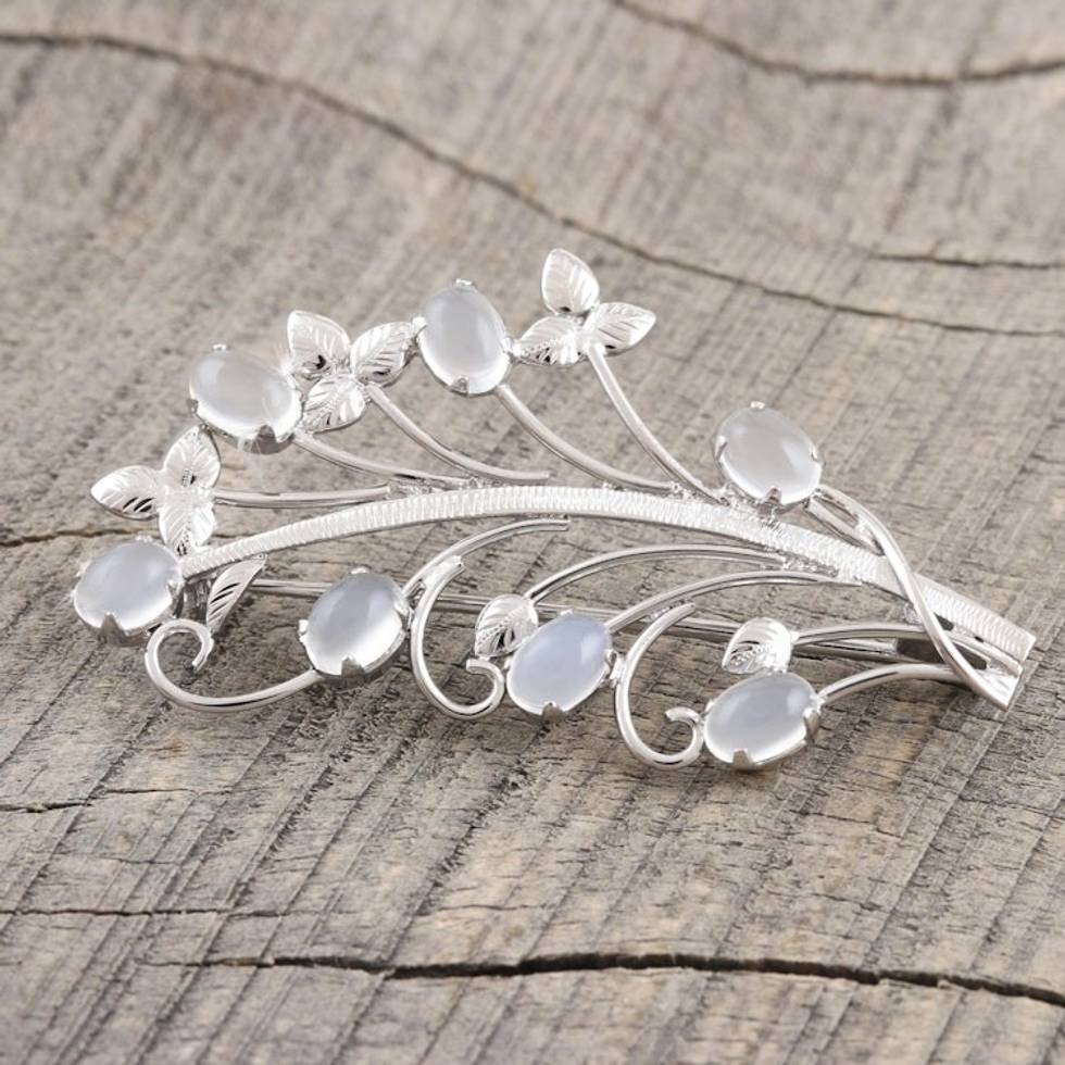 Rhodium-Plated Sterling Silver Moonstone Brooch 'Remembered Dream' Item ID: 2671788438