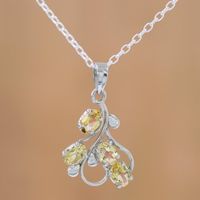 Rhodium Plated Sterling Silver Pendant Necklace with Citrine 'Golden Cluster' Item ID: 2671791987
