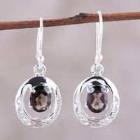 Rhodium-Plated Sterling Silver Smoky Quartz Dangle Earrings 'Sparkling Reflections' Item ID: 2671792765