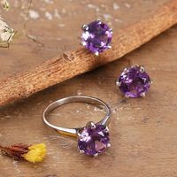 Rhodium-Plated Ten-Carat Faceted Round Amethyst Jewelry Set 'Purple Countess' Item ID: 2671781053