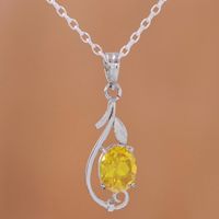 Rhodium Plated Yellow Citrine Pendant Necklace from India 'Morning Vine' Item ID: 2671791249