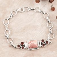 Rhodochrosite and Garnet Sterling Silver Pendant Bracelet 'Romantic Style' Item ID: 2671786771