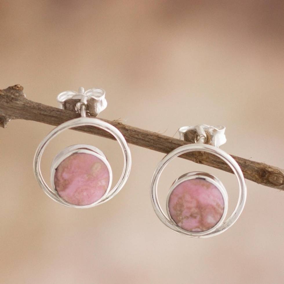 Rhodonite and Sterling Silver Drop Earrings from Peru 'In the Loop' Item ID: 2671689871