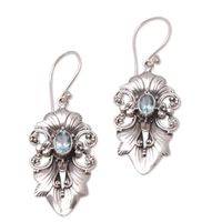 Ribbon Pattern Blue Topaz Dangle Earrings from Bali 'Sparkling Crest' Item ID: 2669923307