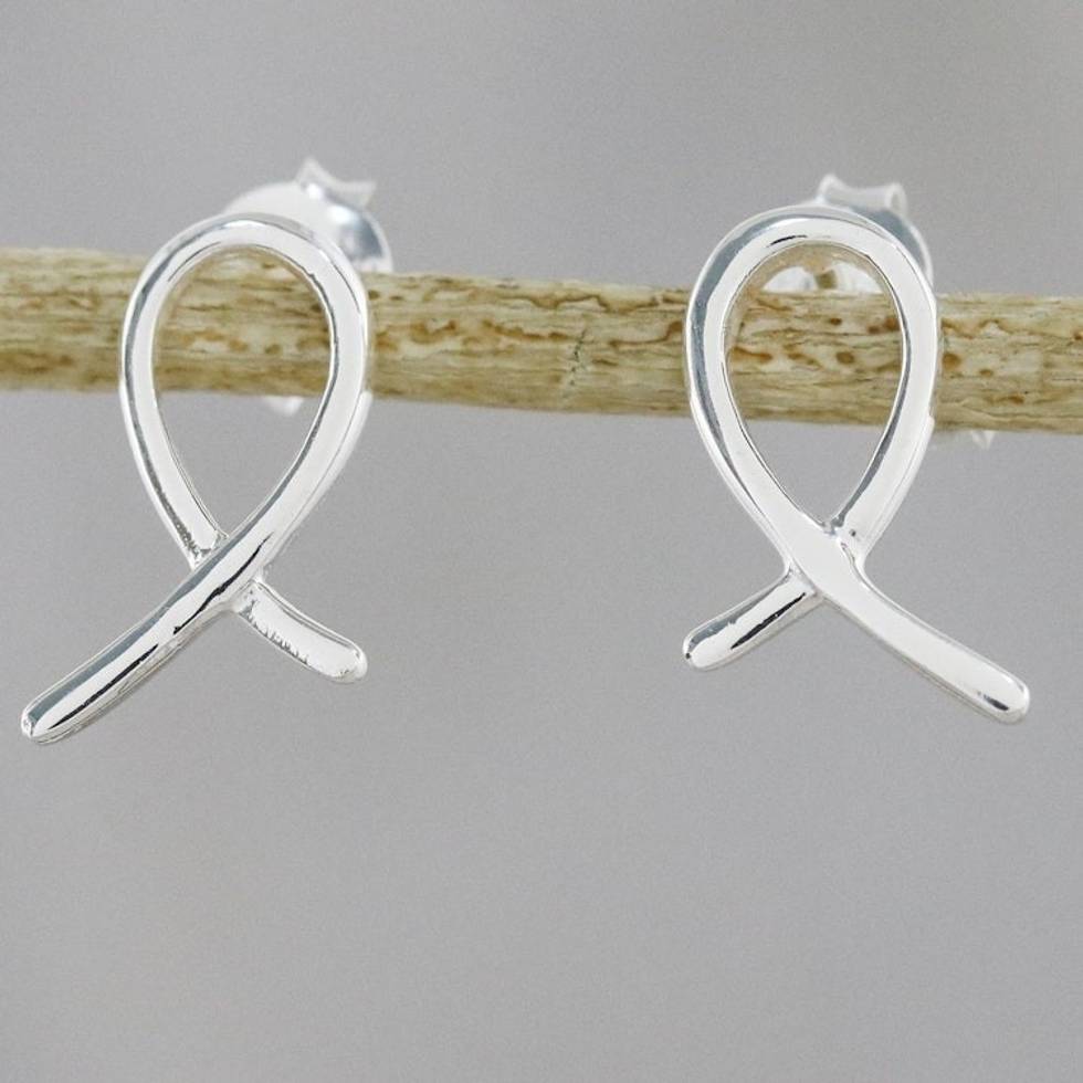 Ribbon-Shaped Sterling Silver Drop Earrings from Thailand 'Gleaming Ribbon' Item ID: 2671641248