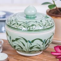 Rice Flower and Bird-Themed Celadon Ceramic Decorative Jar 'Blooming Rice Plant' Item ID: 2671796806