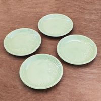 Rice-Themed Celadon Ceramic Plates from Thailand Set of 4 'Thai Rice' Item ID: 2671798356