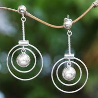 Ring Pattern Sterling Silver Dangle Earrings from Bali 'Happy Rings' Item ID: 2671472869