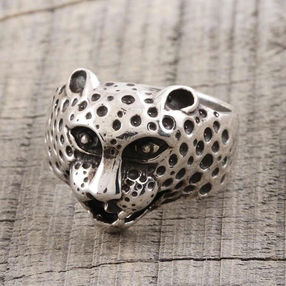 Roaring Cheetah Sterling Silver Men's Ring 'Roaring Cheetah' Item ID: 2671789614