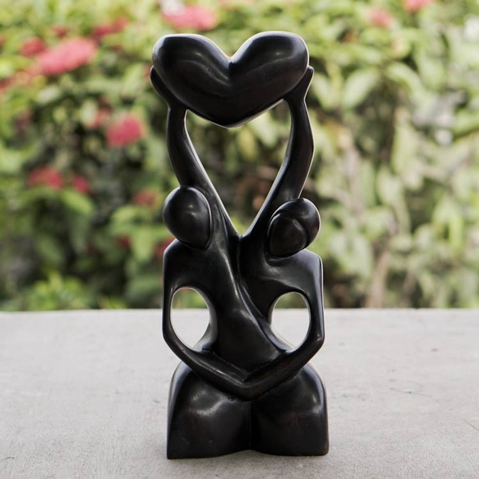 Romantic Ebony Wood Sculpture 'Lover's Heart' Item ID: 2671805310