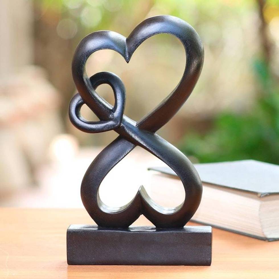 Romantic Hand Carved Wood Sculpture with Black Finish 'Forever Linked' Item ID: 2676667565
