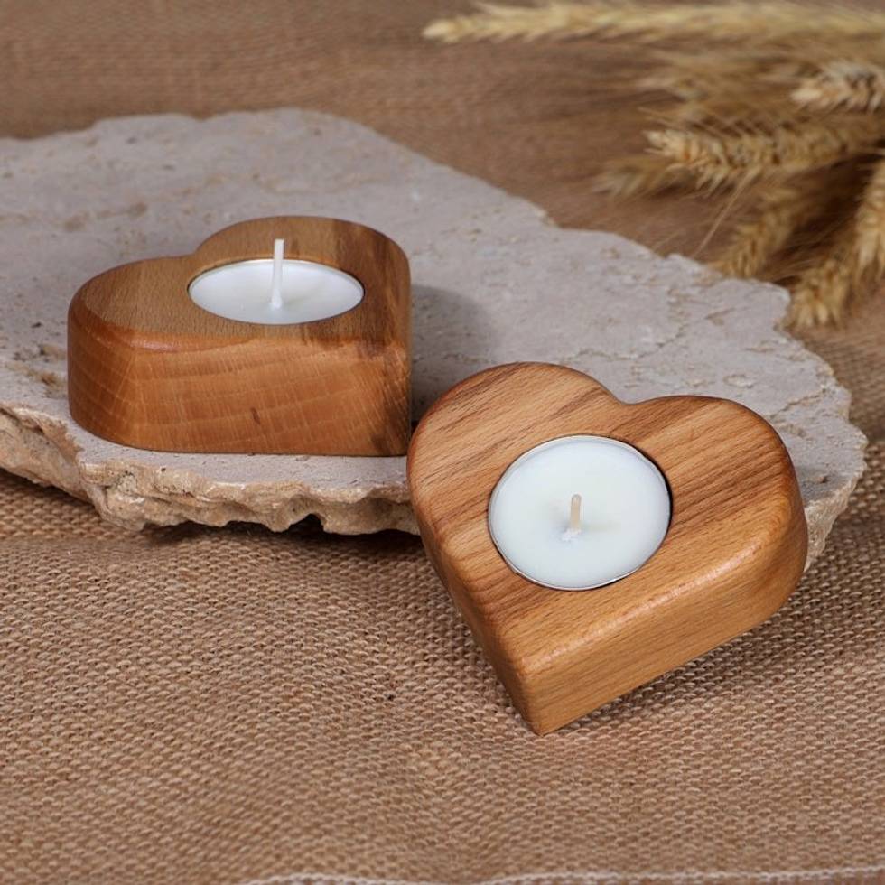 Romantic Heart-Shaped Beech Wood Tealight Candleholder Pair 'Romantic Illumination' Item ID: 2671768773