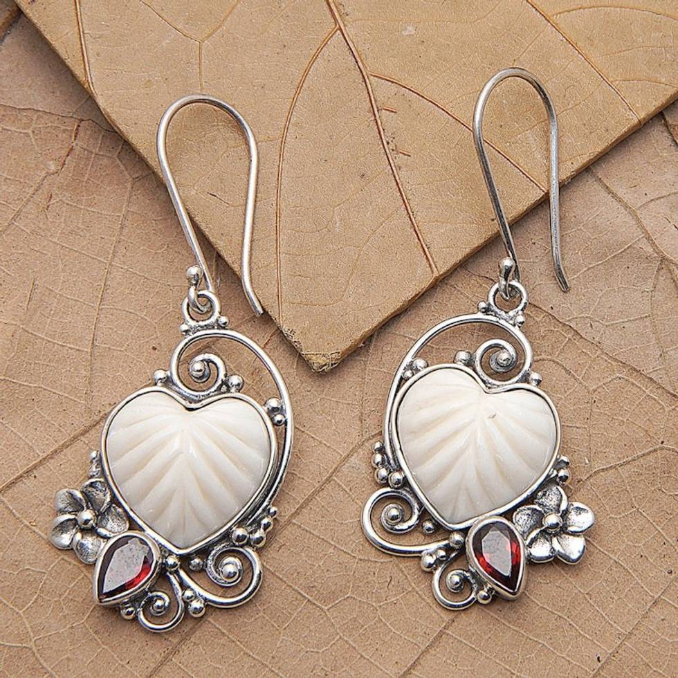 Romantic Heart-Shaped Natural Garnet Dangle Earrings 'Enchanted Passion' Item ID: 2671613464