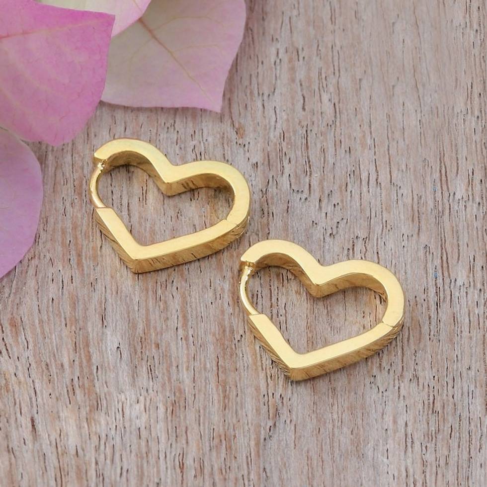 Romantic Heart-Shaped Polished 18k Gold-Plated Hoop Earrings 'Golden of Love' Item ID: 2671646447