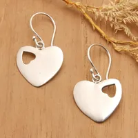 Romantic Heart-Shaped Sterling Silver Dangle Earrings 'Heartfelt Thoughts' Item ID: 2671765282
