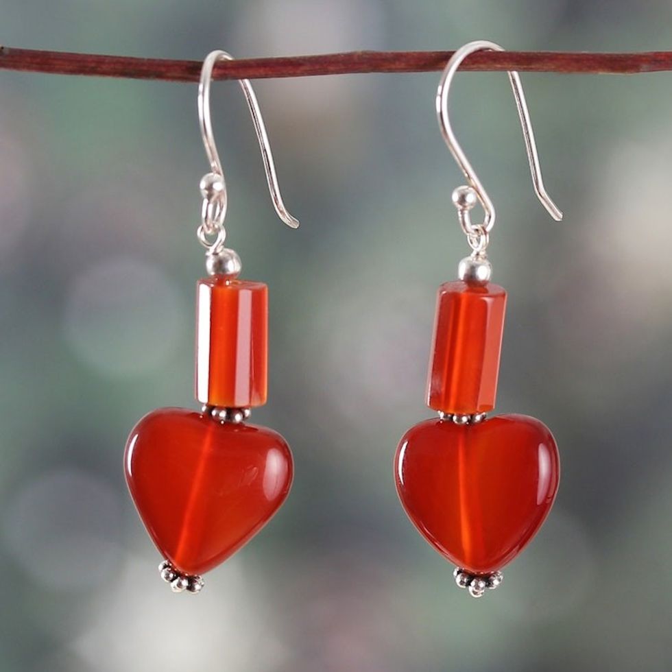 Romantic Minimalist Heart-Shaped Carnelian Dangle Earrings 'Novel Romance' Item ID: 2671625644