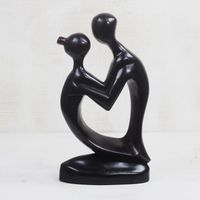Romantic Sese Wood Sculpture in Black from Ghana 'Shadow Lovers' Item ID: 2671806092