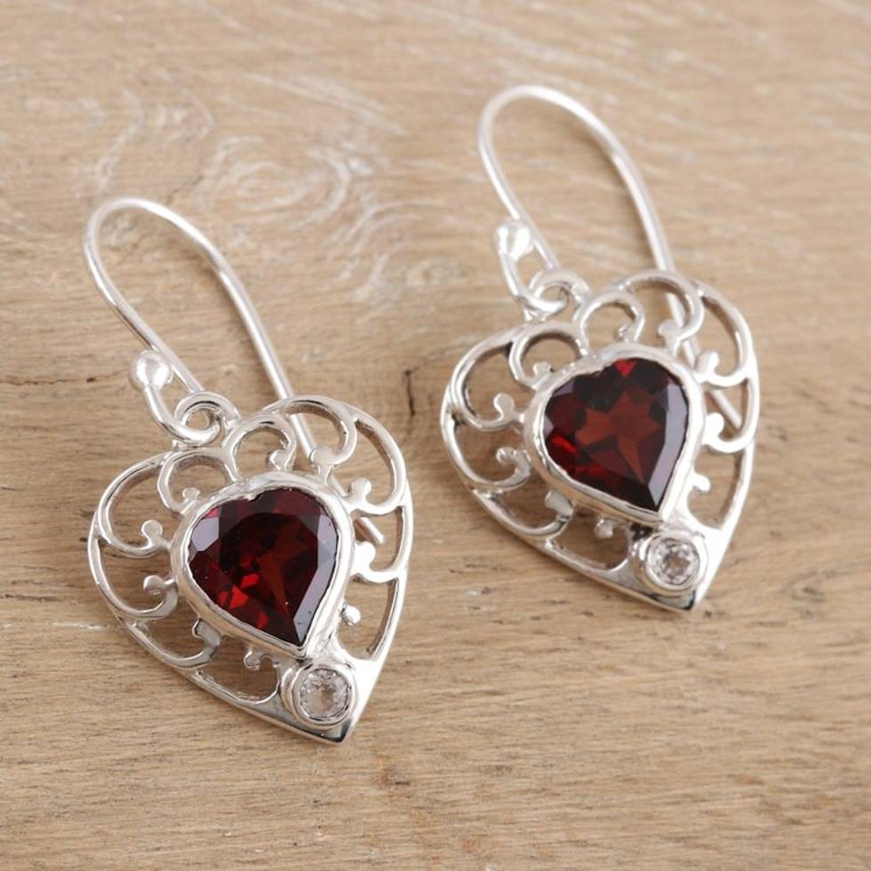 Romantic Sterling Silver Garnet and Topaz Dangle Earrings 'Strong Ties' Item ID: 2671623252