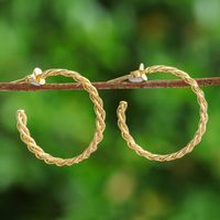 Rope-Shaped 18k Gold-Plated Half-Hoop Earrings from Thailand 'Arcadian Ropes' Item ID: 2671646741
