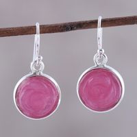 Rose Flower Quartz Dangle Earrings from India 'Blissful Rose' Item ID: 2671619923